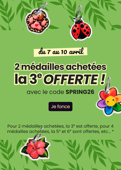 La médaille à personnaliser est le complément indispensable à la puce électronique ou au tatouage. Nous vous proposons des modèles en bois gravé, en métal gravé ou bien en résine avec inclusion.