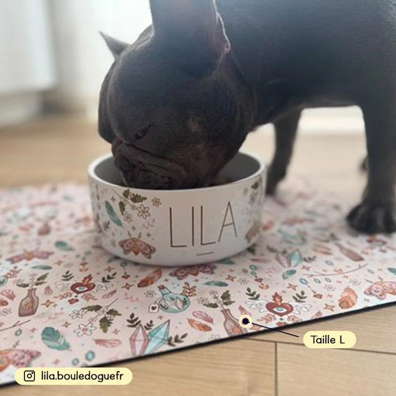 En le plaçant sous la ou les gamelles de votre chien ou de votre chat, il protège votre sol des tâches et des éclaboussures.